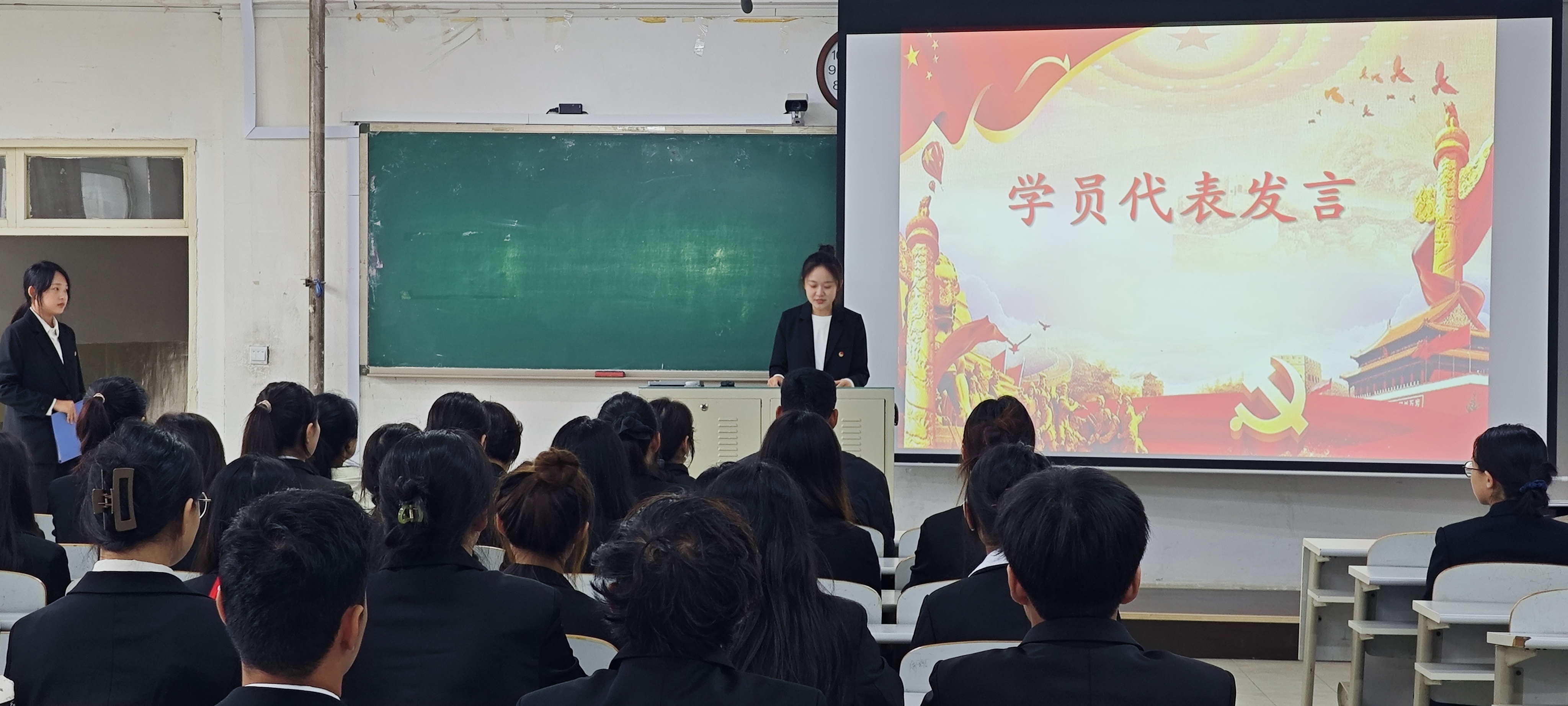 伴随着激昂的国歌旋律,入党积极分子培训班开班仪式正式拉开帷幕。首先,范庆华发表开班动员讲话。她对各位老师、同学成为入党积极分子表示热烈祝贺,并着重强调,加入中国共产党不仅是一种荣誉,更是一份沉重的责任。作为党的后备力量,入党积极分子肩负着重大的历史使命。她鼓励学员们坚定理想信念,不断提升自身的政治素质和业务能力,时刻以党员的标准严格要求自己,在学习、工作和生活中发挥先锋模范作用,为实现党的目标贡献力量。
