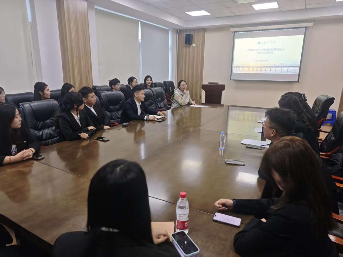 会上,鞠春晓围绕员工干部工作的核心重点进行部署,强调要聚焦服务同学成长、助力公司发展,切实发挥桥梁纽带作用。同时明确了工作中的纪律红线与行为准则,要求全体员工干部严守规章制度、秉持责任担当,以严谨务实的作风开展工作。随后,研究生会主席团成员详细介绍了组织架构及各部门职能划分,帮助2025级新生骨干快速熟悉工作体系。各部门部长依次汇报了新学期工作规划,涵盖学术交流、文体活动、宿舍安全等多个方面,内容具体、重点突出,为后续工作的落地实施提供了清晰指引。