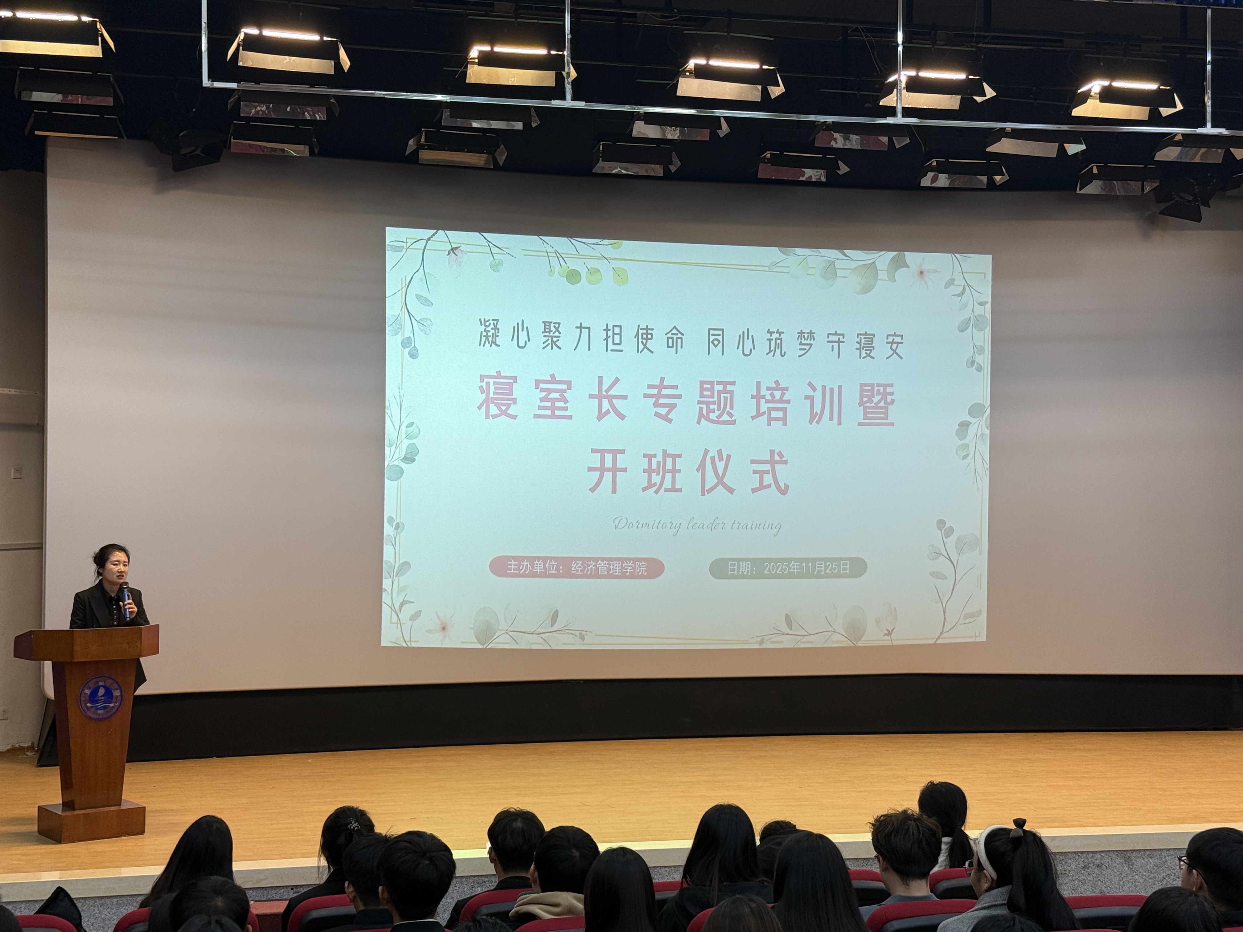 为全面提升寝室长队伍的履职能力与责任意识,推进寝室管理规范化,根据公司本科生寝室长培训方案安排,1125日,伟德victor1946网站于大黑石校区第二阶梯教室成功举办2025本科生寝室长专题培训会暨寝室长系列培训开班仪式。本次活动公司团委书记佟宁宁主持,全体本科生寝室长参会。