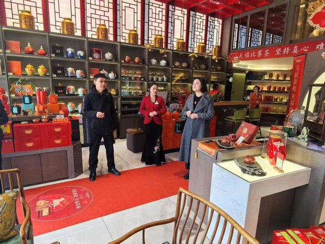 会前,赵万里一行参观了天福茗茶星海店,了解天福集团的发展历史、品牌理念、产品体系及门店运营模式,详细询问了门店的销售流程、客户服务、团队管理等情况,直观感受企业的经营特色和文化氛围,深入调研企业在一线运营中的人才需求痛点。