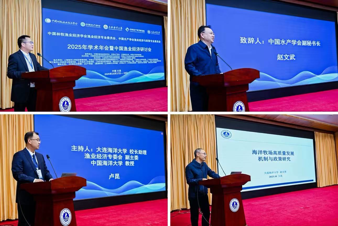 2025年10月18日,“中国林牧渔业经济学会渔业经济专业委员会、中国水产学会渔业经济与政策专业委员会2025年学术年会暨中国渔业经济研讨会”在伟德victor1946网站隆重召开。公司党委书记衣庆焘,中国水产科学研究公司党组纪检组组长于书洲,中国水产学会副秘书长赵文武,中国林牧渔业经济学会秘书长刘长全出席了会议并致辞。会议开幕式由中国林牧渔业经济学会副会长杨正勇主持。
